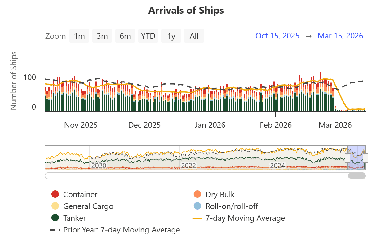 International Monetary Fund PortWatch, 2026, Port Monitor Strait of Hormuz, https://portwatch.imf.org/pages/cb5856222a5b4105adc6ee7e880a1730.